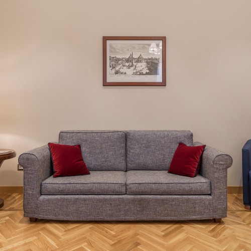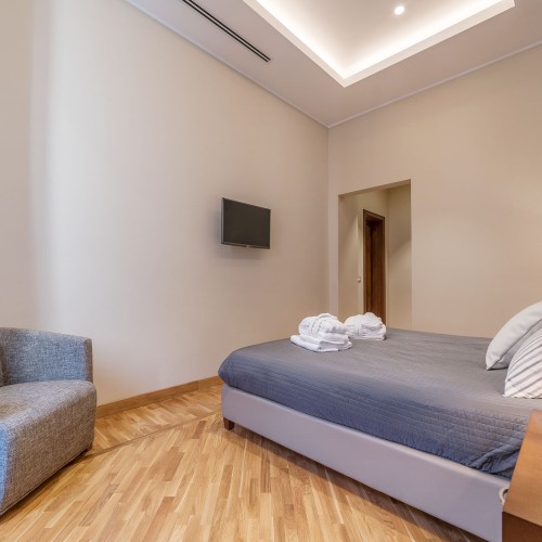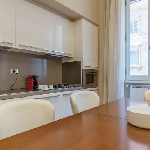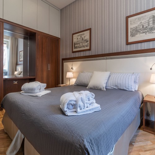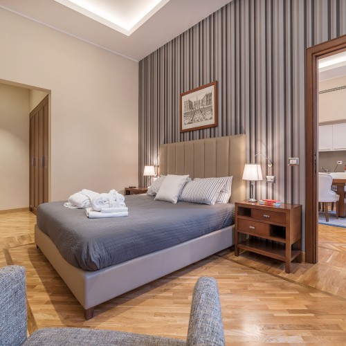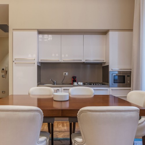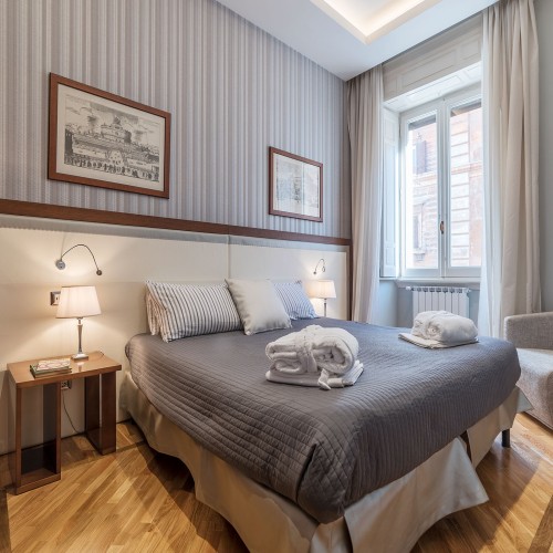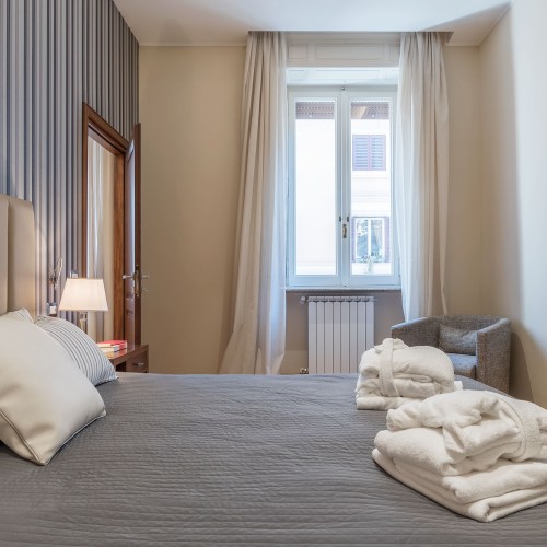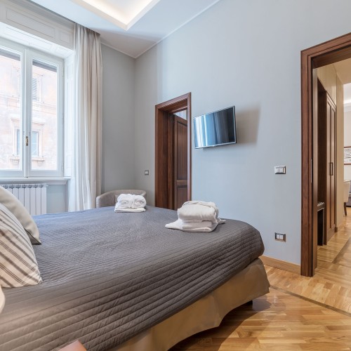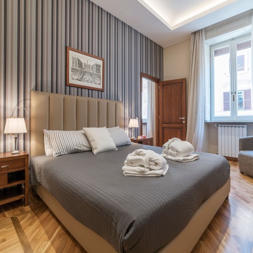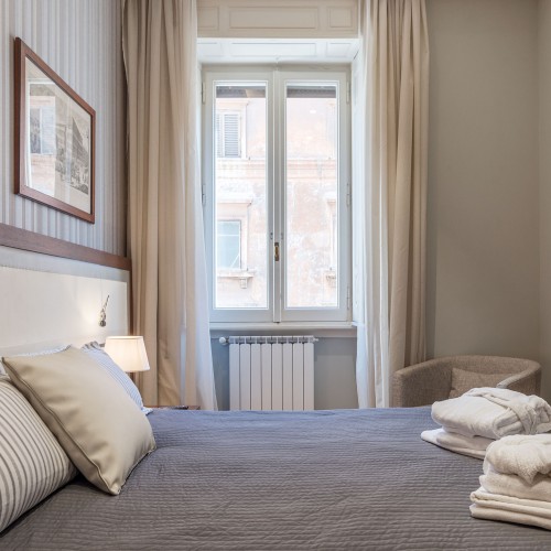 L'appartamento è situato in un palazzo Umbertino dei primi dell'800, dotato di portineria ed ascensore, situato a due passi da Via Veneto e a pochi minuti da Piazza di Spagna. Con due stanze matrimoniali dotate ciascuna di bagno privato, un salotto spazioso ed una superficie totale di 85 metri quadrati, questo appartamento si affaccia su Via Emilia.