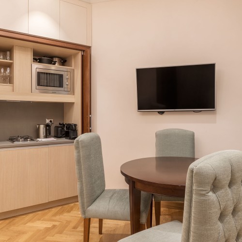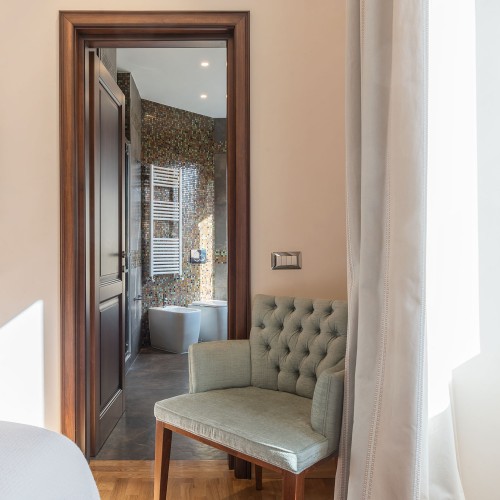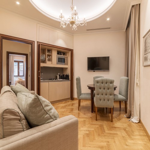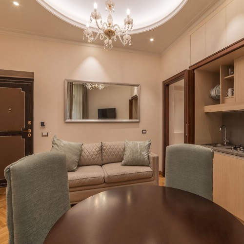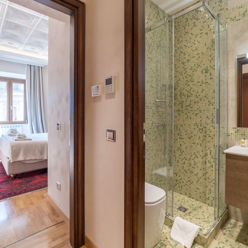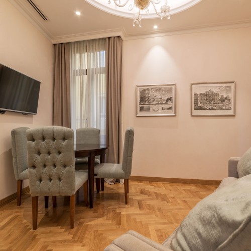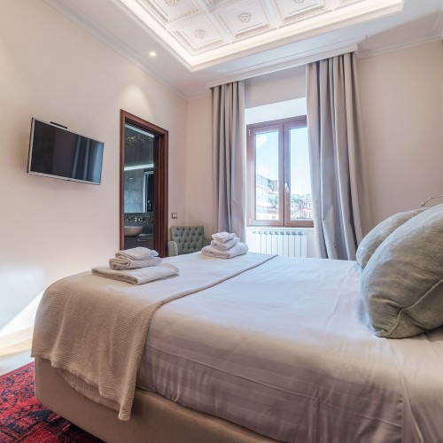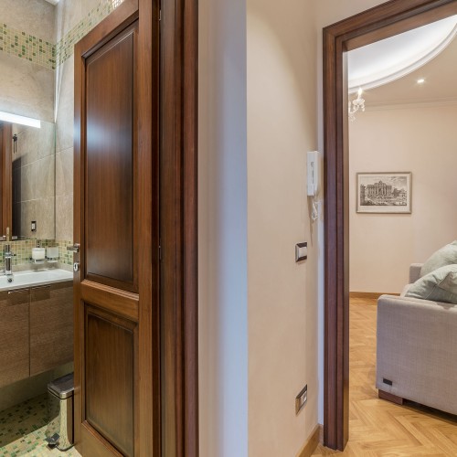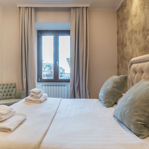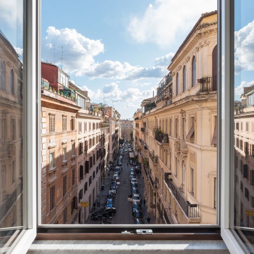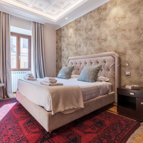 L'appartamento è situato in un palazzo Umbertino dei primi dell'800, dotato di portineria ed ascensore, situato a due passi da Via Veneto e a pochi minuti da Piazza di Spagna. Con una camera matrimoniale, con bagno en-suite ed un secondo bagno in corridoio, un salotto spazioso ed una superficie totale di 65 metri quadrati, questo appartamento con balconi si affaccia su una silenziosa corte interna e su via Lazio (angolo via Emilia).